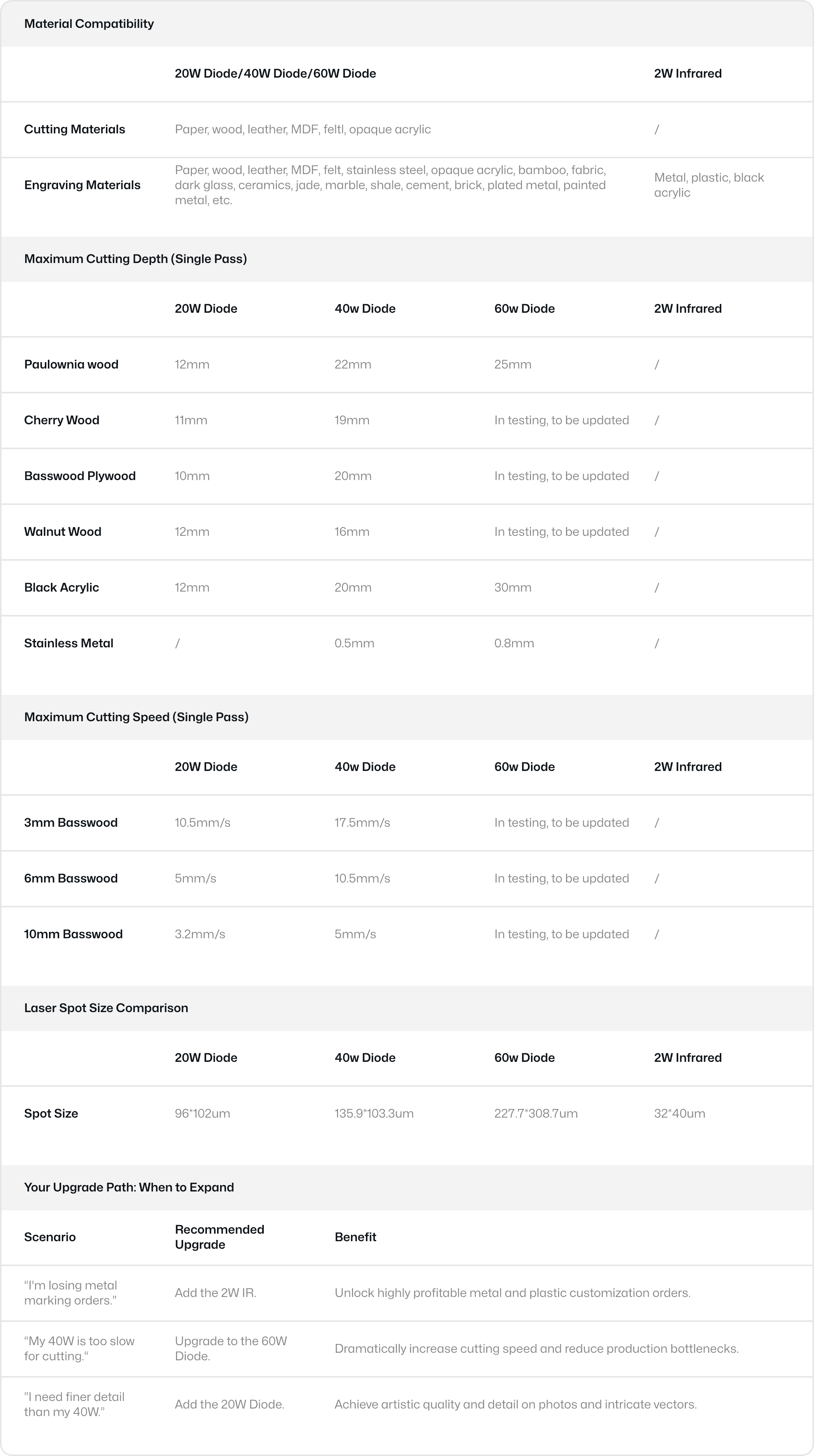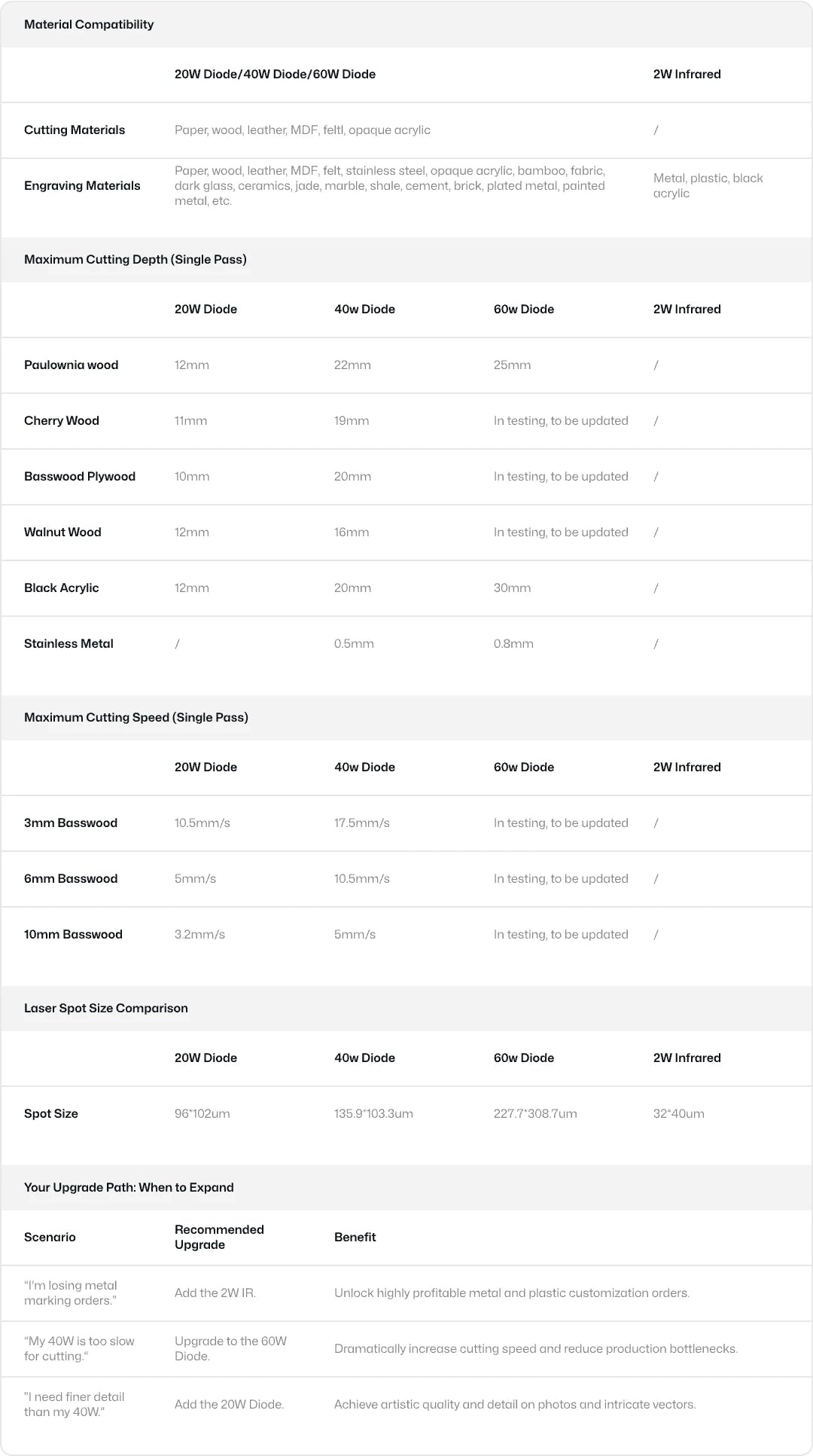 · 20W Diode Laser: 114 mm × 77.4 mm × 72 mm | 4.49″ × 3.05″ × 2.83″