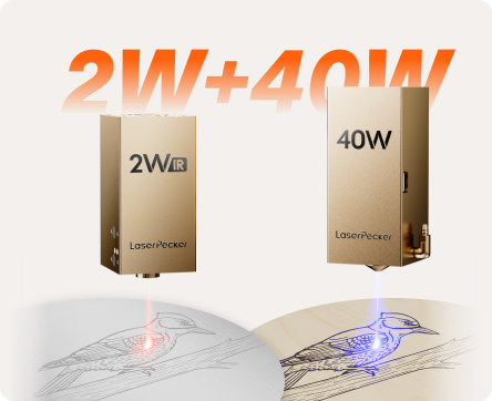 · 40W Diode Laser: 152.2 mm × 77.4 mm × 72 mm | 5.99″ × 3.05″ × 2.83″