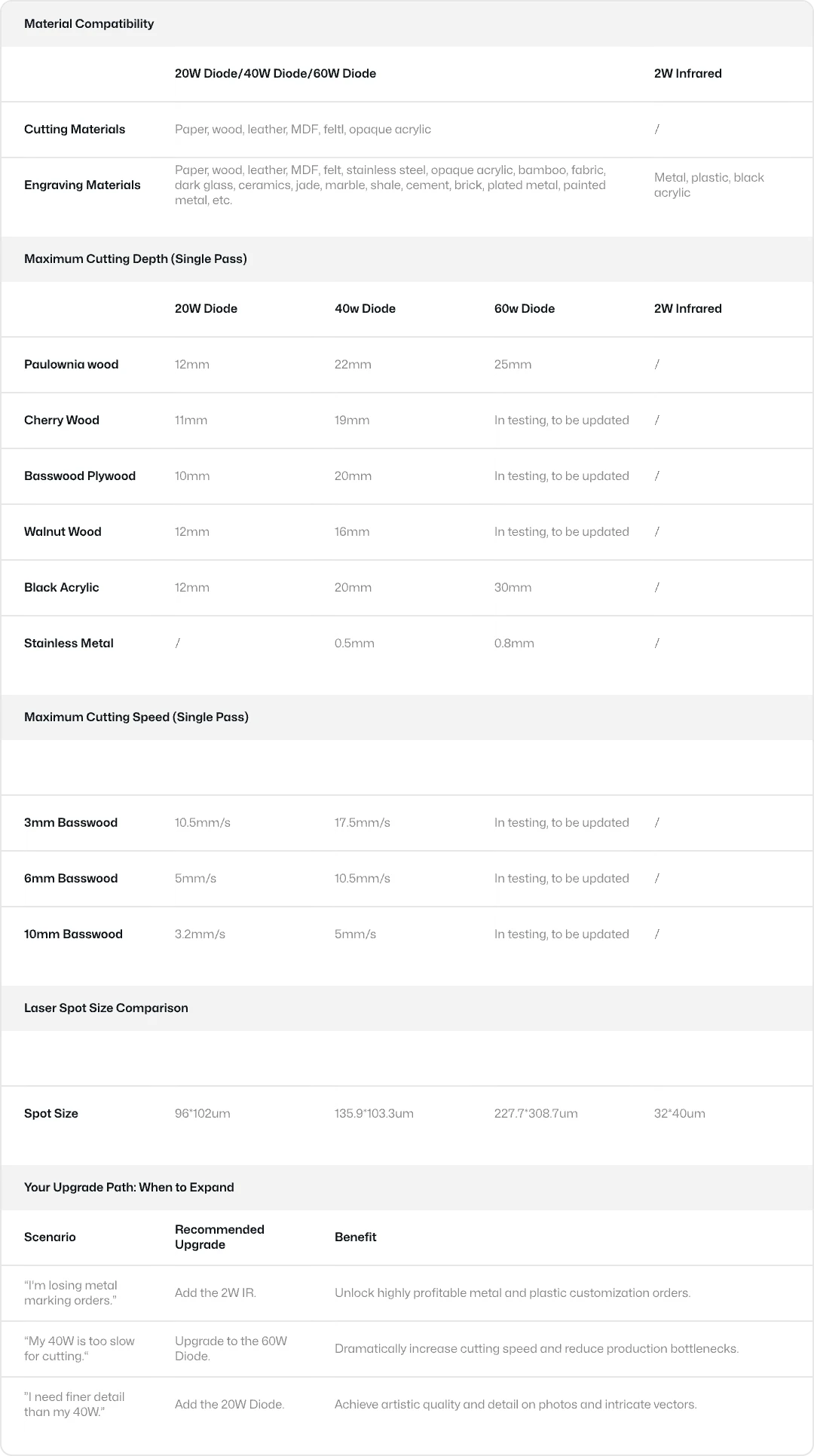 · 20W Diode Laser: 114 mm × 77.4 mm × 72 mm | 4.49″ × 3.05″ × 2.83″